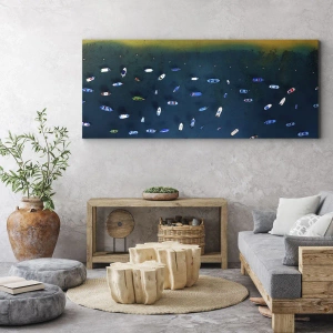 Impression sur toile - Image sur toile - Vue aérienne de bateaux sur l'eau et d'un rivage sablonneux - 120x80cm - Jeu de vacances - Décoration murale moderne pour le salon et la chambre ARTTOR