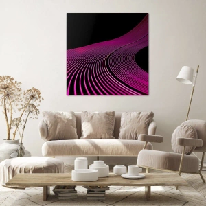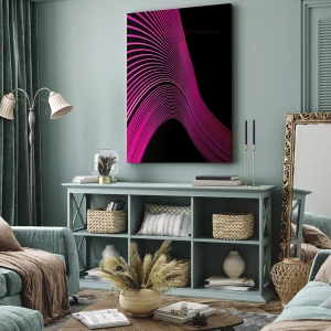 Impression sur toile - Image sur toile - Lignes futuristes dans des tons de rose sur fond noir - 50x70cm - Avenue de lumière - Décoration murale moderne pour le salon et la chambre ARTTOR