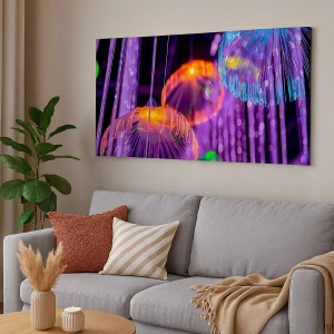 Impression sur toile - Image sur toile - Méduses lumineuses colorées dans un environnement sombre - 120x80cm - Fontaine lumineuse - Décoration murale moderne pour le salon et la chambre ARTTOR