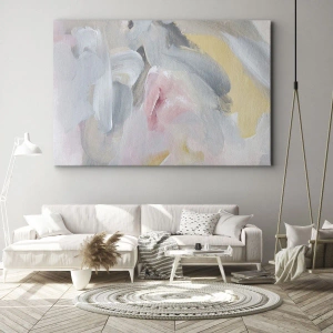 La peinture sur toile « Dans un monde pastel » est une décoration moderne alliant délicatesse et expression artistique. La composition, basée sur de subtils coups de pinceau créant un arrangement abstrait dans des tons de rose, de gris et de jaune, apporte harmonie et élégance à tout intérieur.