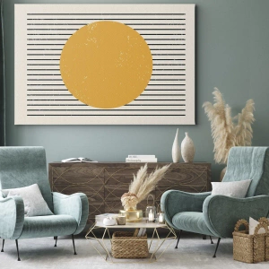 Impression sur toile - Image sur toile - Un cercle jaune sur un fond de lignes horizontales noires et blanches - 140x50cm - Le pouvoir de la simplicité - Décoration murale moderne pour le salon et la chambre ARTTOR