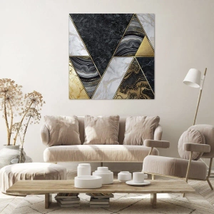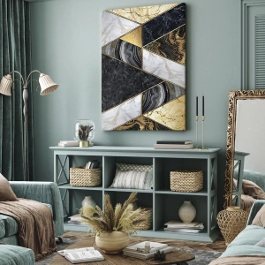 Impression sur toile - Image sur toile - Triangles géométriques en or, marbre et nuances sombres - 70x50cm - Pierre après pierre - Décoration murale moderne pour le salon et la chambre ARTTOR