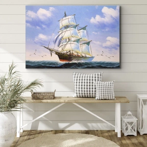 Impression sur toile - Image sur toile - Un voilier en pleine mer sous un ciel bleu - 80x120cm - Fièrement avec le vent - Décoration murale moderne pour le salon et la chambre ARTTOR