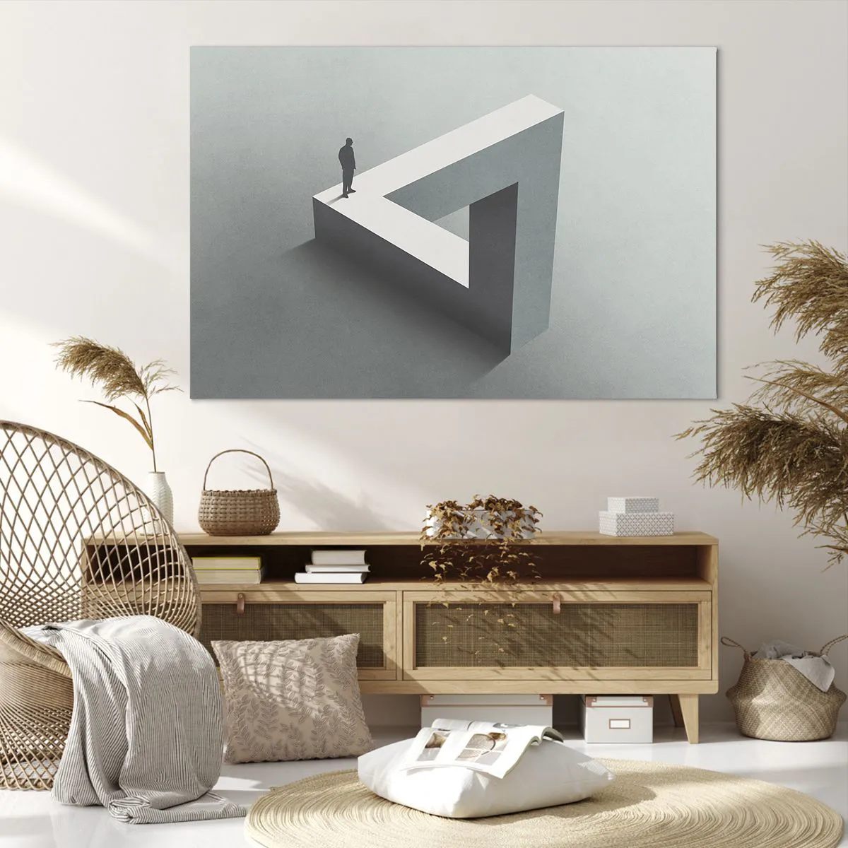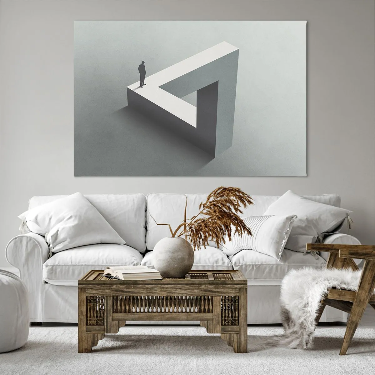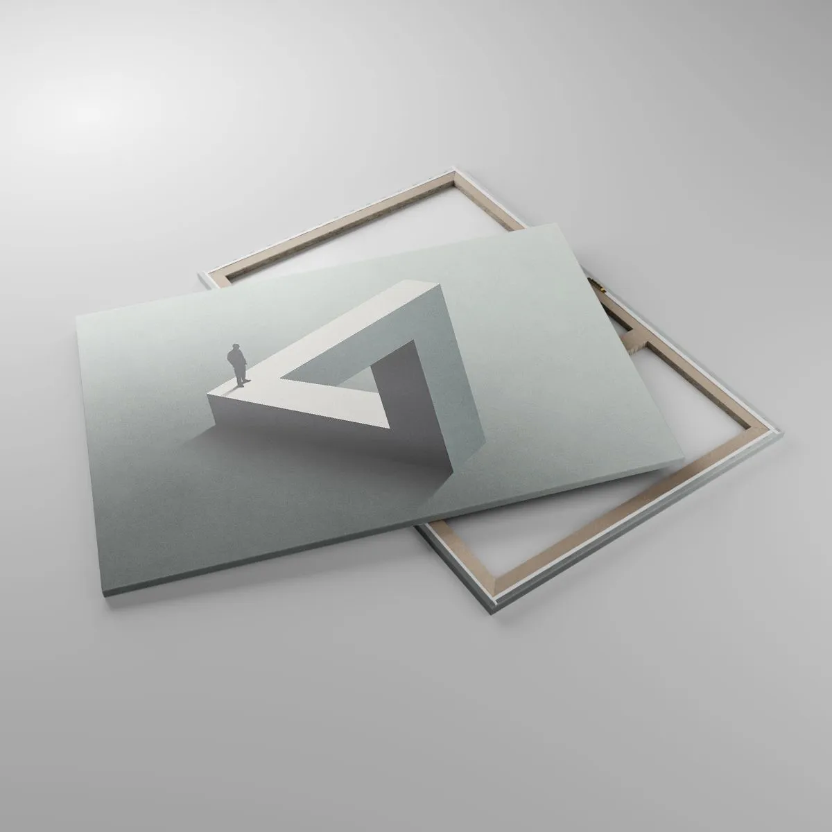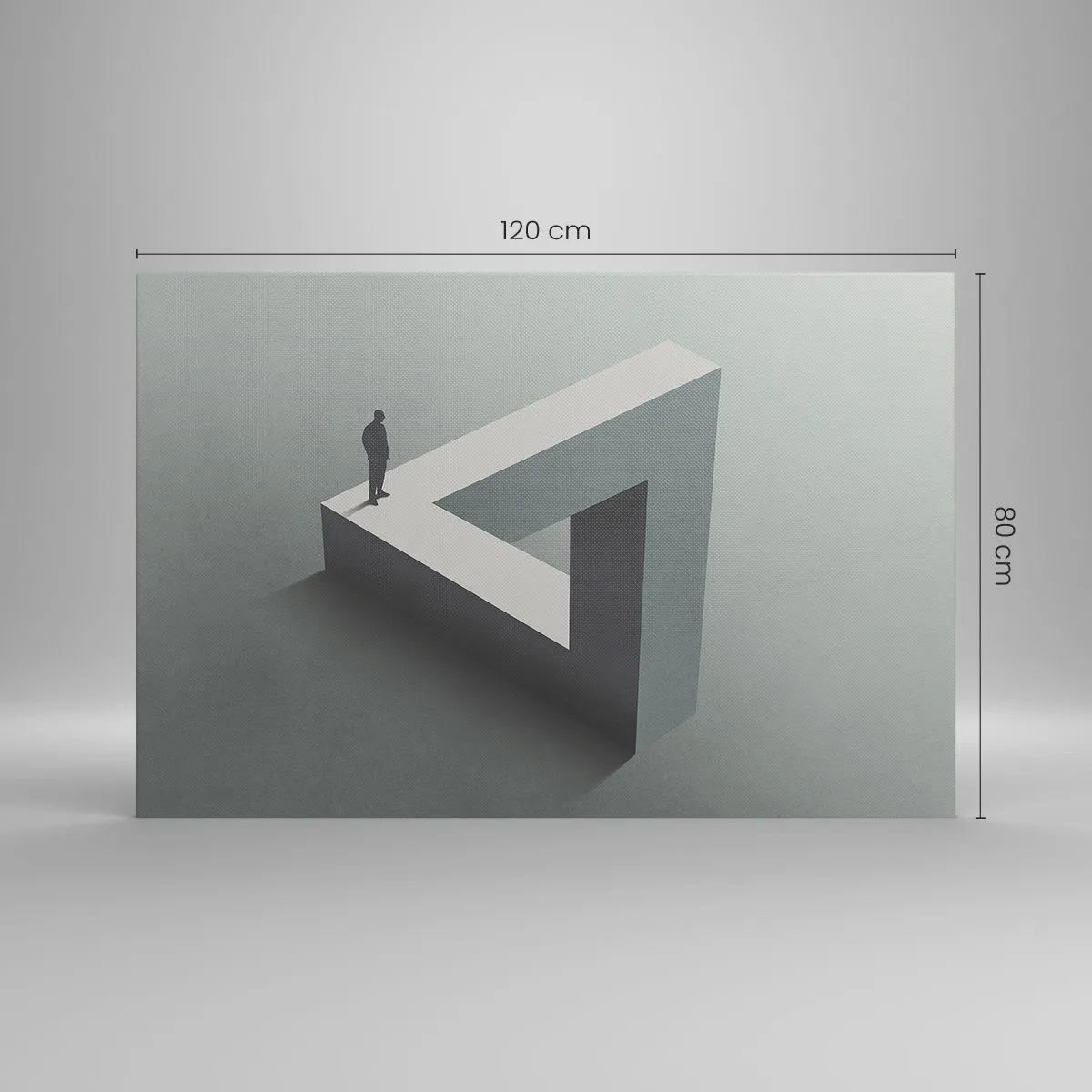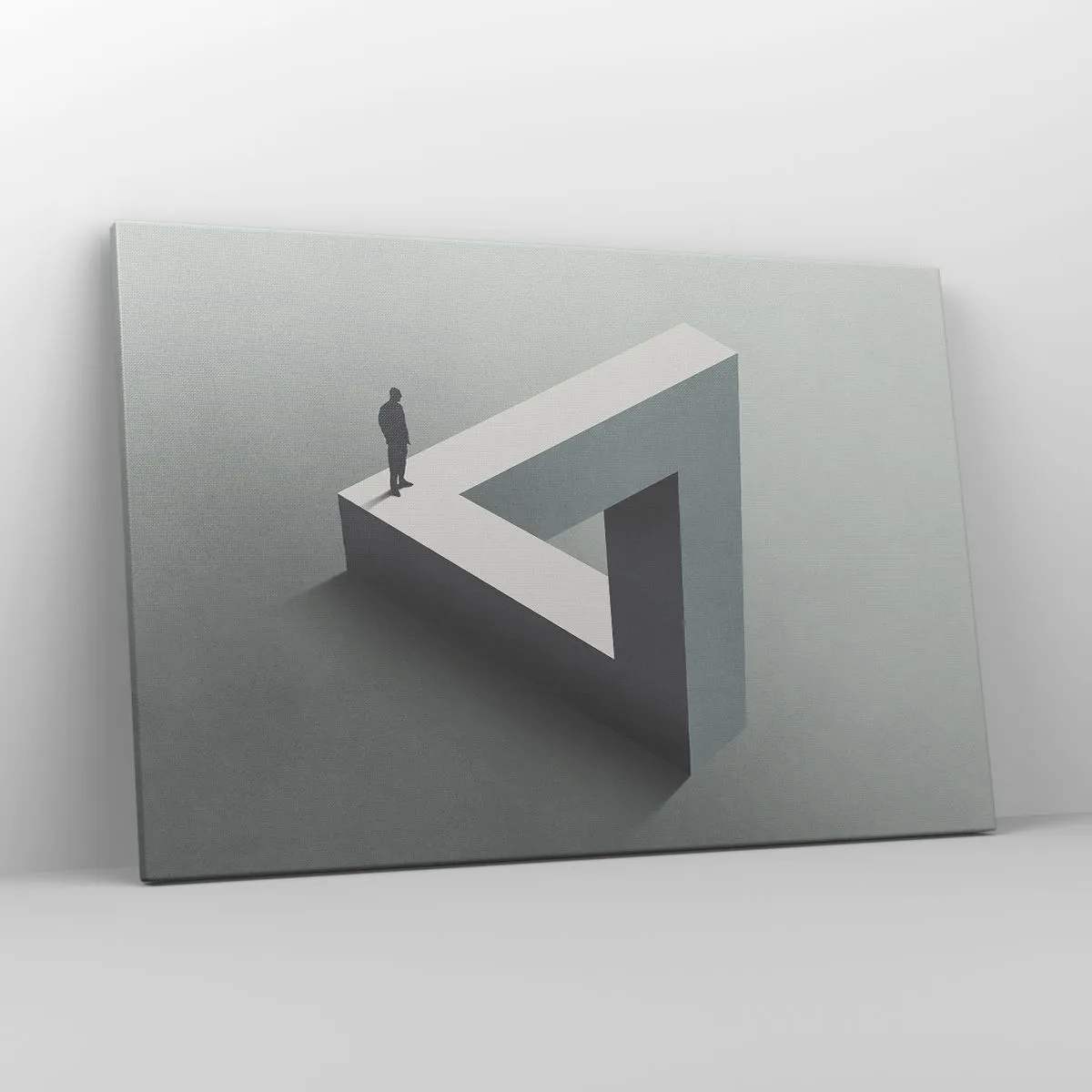 Impression sur toile - Image sur toile - Une figure debout sur un triangle de Penrose dans des tons de gris. - 120x80cm - Mais c'est possible - Décoration murale moderne pour le salon et la chambre ARTTOR