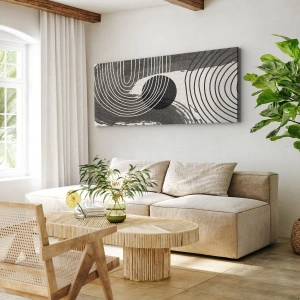 Impression sur toile - Image sur toile - Lignes géométriques et ovales dans des tons monochromes - 160x50cm - L'ovale gagne - Décoration murale moderne pour le salon et la chambre ARTTOR