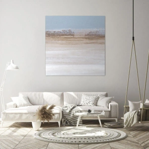 Impression sur toile - Image sur toile - Un paysage subtil aux tons pastel de bleu et de beige - 160x50cm - Paysage ambigu - Décoration murale moderne pour le salon et la chambre ARTTOR
