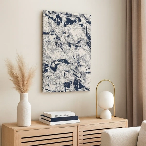 - Un tableau avec une composition abstraite dynamique en noir et blanc, créant un contraste unique, parfait pour les intérieurs modernes.