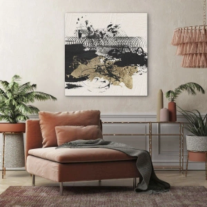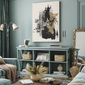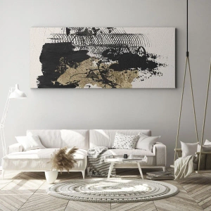 Impression sur toile - Image sur toile - Une peinture abstraite en noir et or avec des lignes et des structures dynamiques. - 100x70cm - Composer avec passion - Décoration murale moderne pour le salon et la chambre ARTTOR