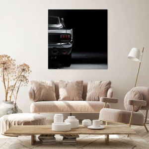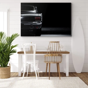 Impression sur toile - Image sur toile - Une image en noir et blanc de l'arrière d'une voiture classique sur un fond sombre. - 80x120cm - Le charme du classique - Décoration murale moderne pour le salon et la chambre ARTTOR
