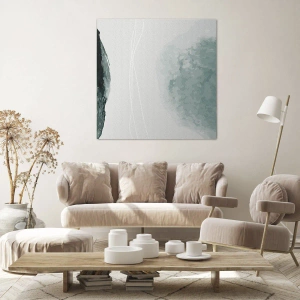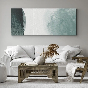 Impression sur toile - Image sur toile - Une délicate composition abstraite dans des tons de vert avec des formes subtiles sur un fond clair. - 120x50cm - Rencontre avec le brouillard - Décoration murale moderne pour le salon et la chambre ARTTOR