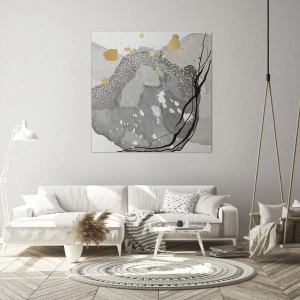 Impression sur toile - Image sur toile - Formes organiques dans des tons de gris avec des accents de noir et d'or - 120x80cm - Composition organique - Décoration murale moderne pour le salon et la chambre ARTTOR