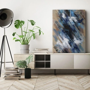 Impression sur toile - Image sur toile - Composition abstraite avec des lignes diagonales bleues - 50x70cm - Diagonale de bleus - Décoration murale moderne pour le salon et la chambre ARTTOR