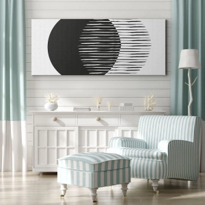 Impression sur toile - Image sur toile - Deux cercles superposés avec des lignes noires et blanches - 80x120cm - Son alter ego - Décoration murale moderne pour le salon et la chambre ARTTOR
