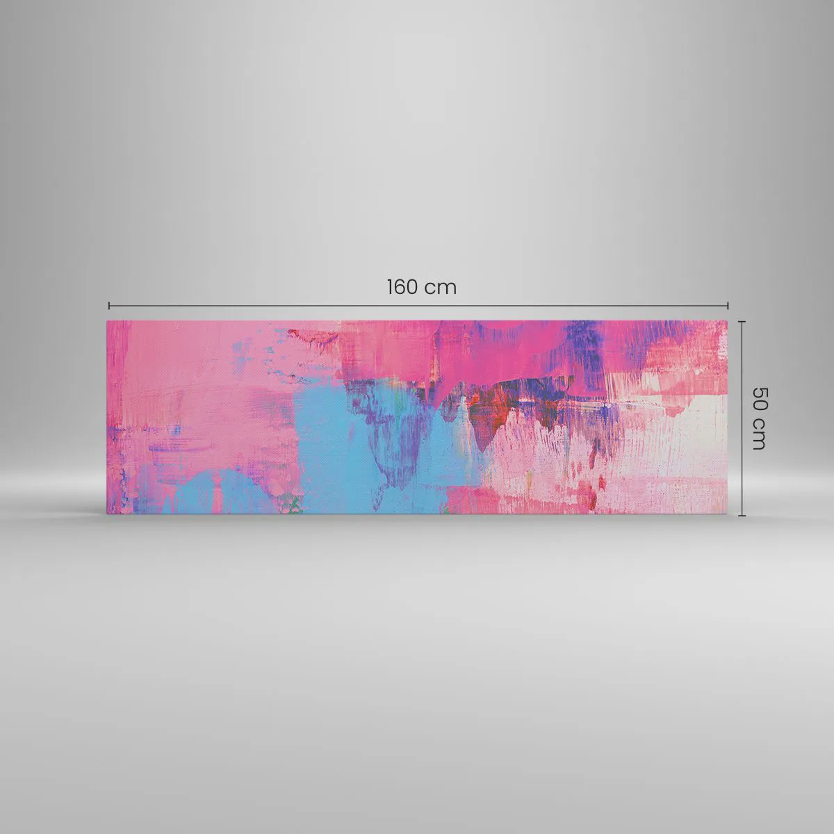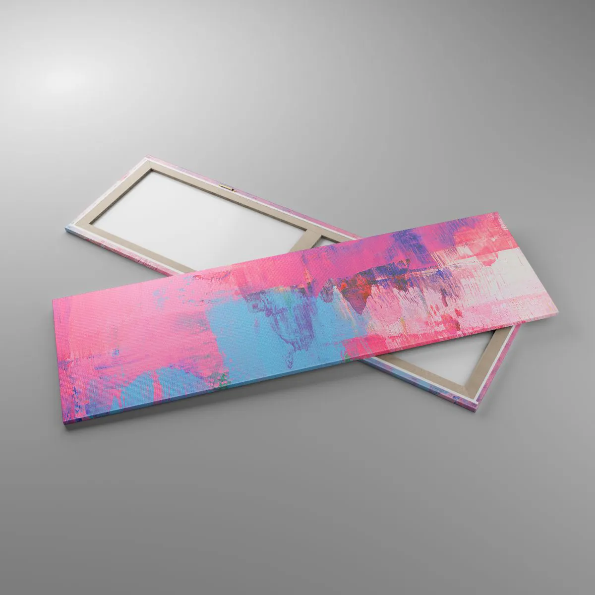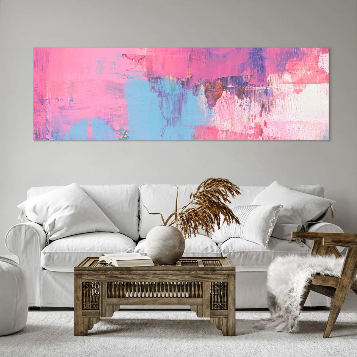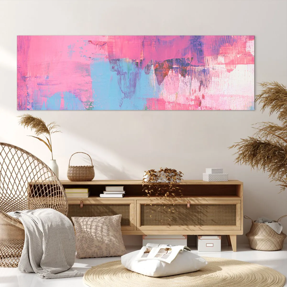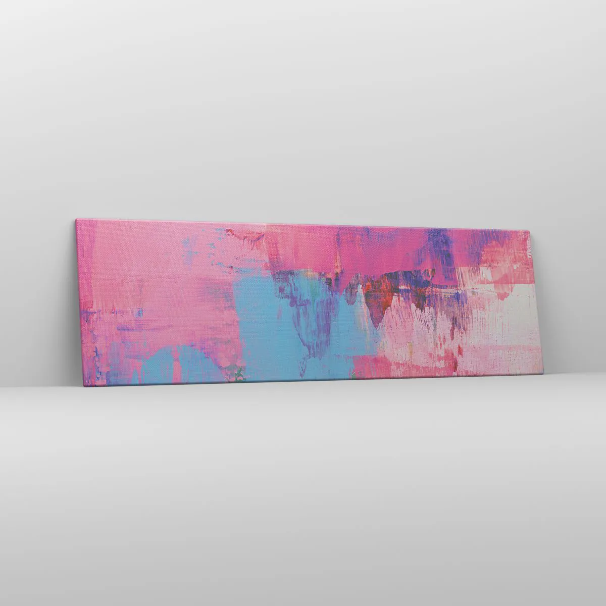 Impression sur toile - Image sur toile - Composition abstraite en rose et bleu - 160x50cm - Du rose, du bleu et une pincée de lumière - Décoration murale moderne pour le salon et la chambre ARTTOR