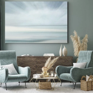 Impression sur toile - Image sur toile - Un paysage minimaliste aux nuances délicates de bleu - 50x70cm - Paix à l'horizon - Décoration murale moderne pour le salon et la chambre ARTTOR