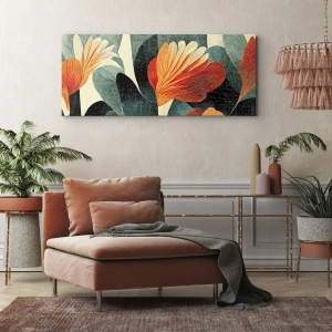 Décoration murale - La chaleur des tropiques et la fraîcheur du vert - Fleurs aux nuances intenses d'orange et de vert