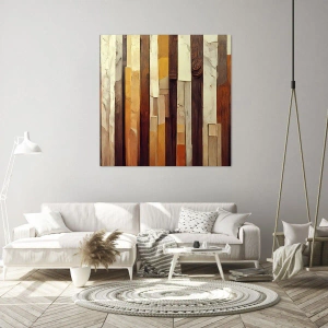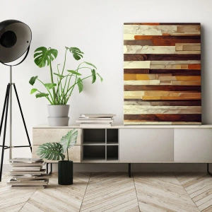 Impression sur toile - Image sur toile - Composition géométrique dans les tons de bois et d'or - 70x100cm - Hymne des arbres forestiers - Décoration murale moderne pour le salon et la chambre ARTTOR