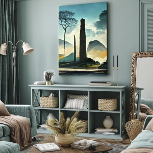 - Ce tableau représente un paysage pittoresque avec des arbres et des montagnes en arrière-plan. Un motif harmonieux et expressif, parfait pour un intérieur comme un salon, un bureau ou une chambre.