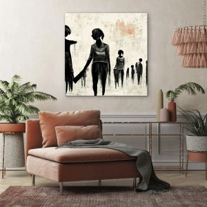 Impression sur toile - Image sur toile - Figures dans une composition monochrome sur fond clair - 140x50cm - Contre la solitude - Décoration murale moderne pour le salon et la chambre ARTTOR