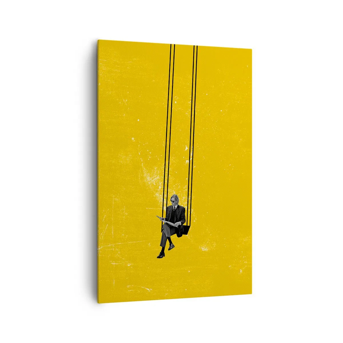 Impression sur toile - Image sur toile - Une personne sur une balançoire sur un fond jaune intense - 80x120cm - Un jour comme tous les jours - Décoration murale moderne pour le salon et la chambre ARTTOR