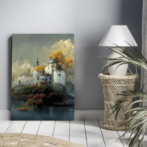 Impression sur toile - Image sur toile - Un château sur une colline entouré d'arbres d'automne - 120x50cm - Le début d'une histoire romantique - Décoration murale moderne pour le salon et la chambre ARTTOR