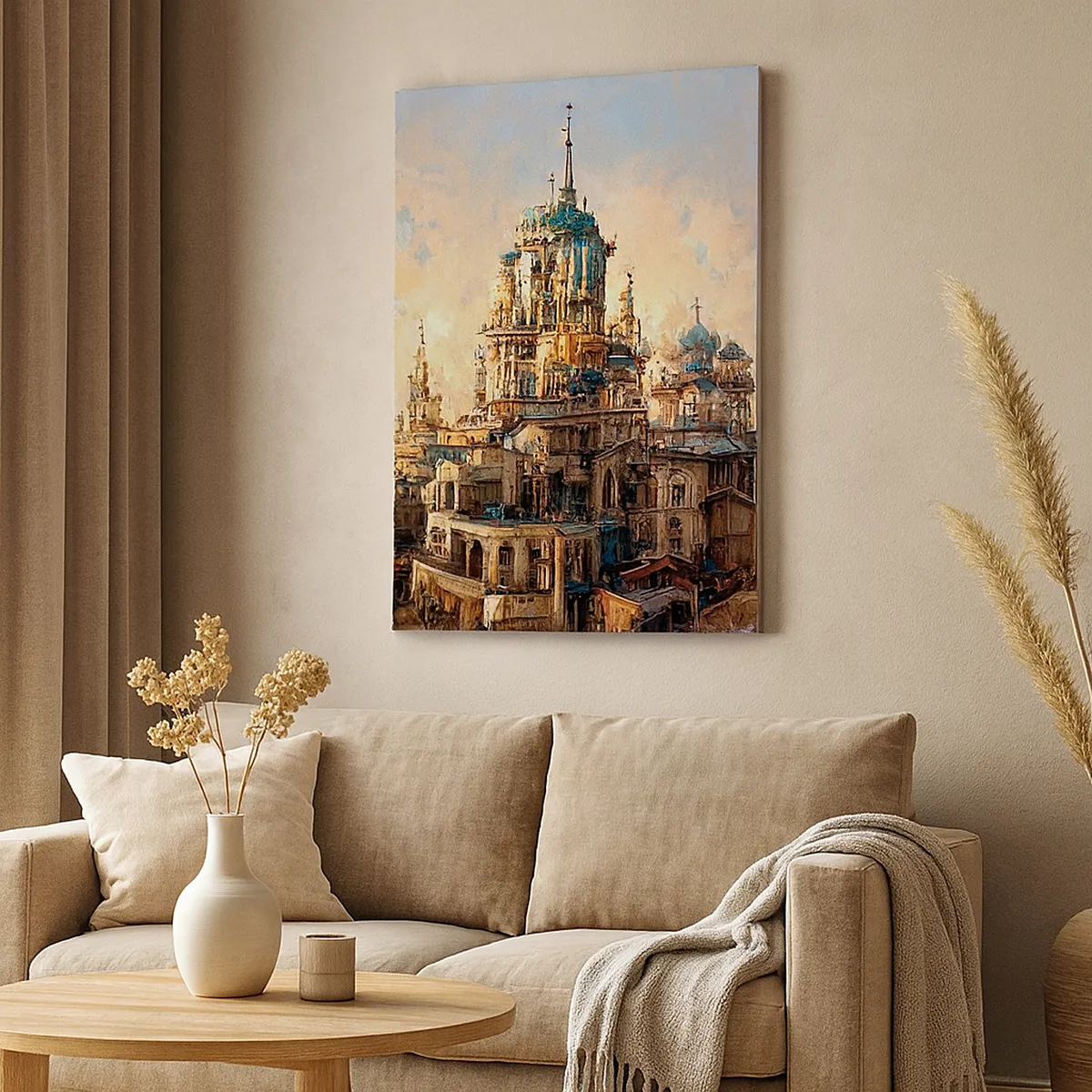 Impression sur toile - Image sur toile - Tours architecturales dans les rayons du soleil couchant - 70x100cm - Ville des villes - Décoration murale moderne pour le salon et la chambre ARTTOR