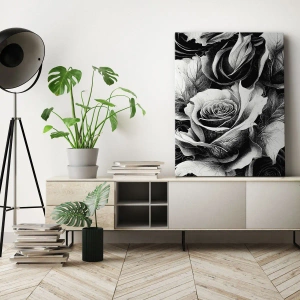 - Le tableau représente des roses noires et blanches dans une composition élégante et harmonieuse. Ce motif subtil souligne parfaitement le style et la sophistication de l'intérieur.