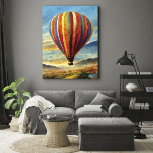 Impression sur toile - Image sur toile - Un ballon coloré au-dessus d'un paysage pittoresque - 70x100cm - Dans le silence on voit mieux - Décoration murale moderne pour le salon et la chambre ARTTOR