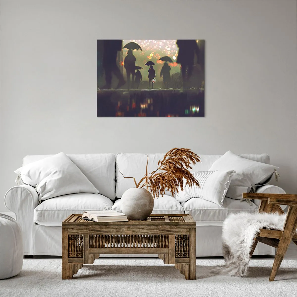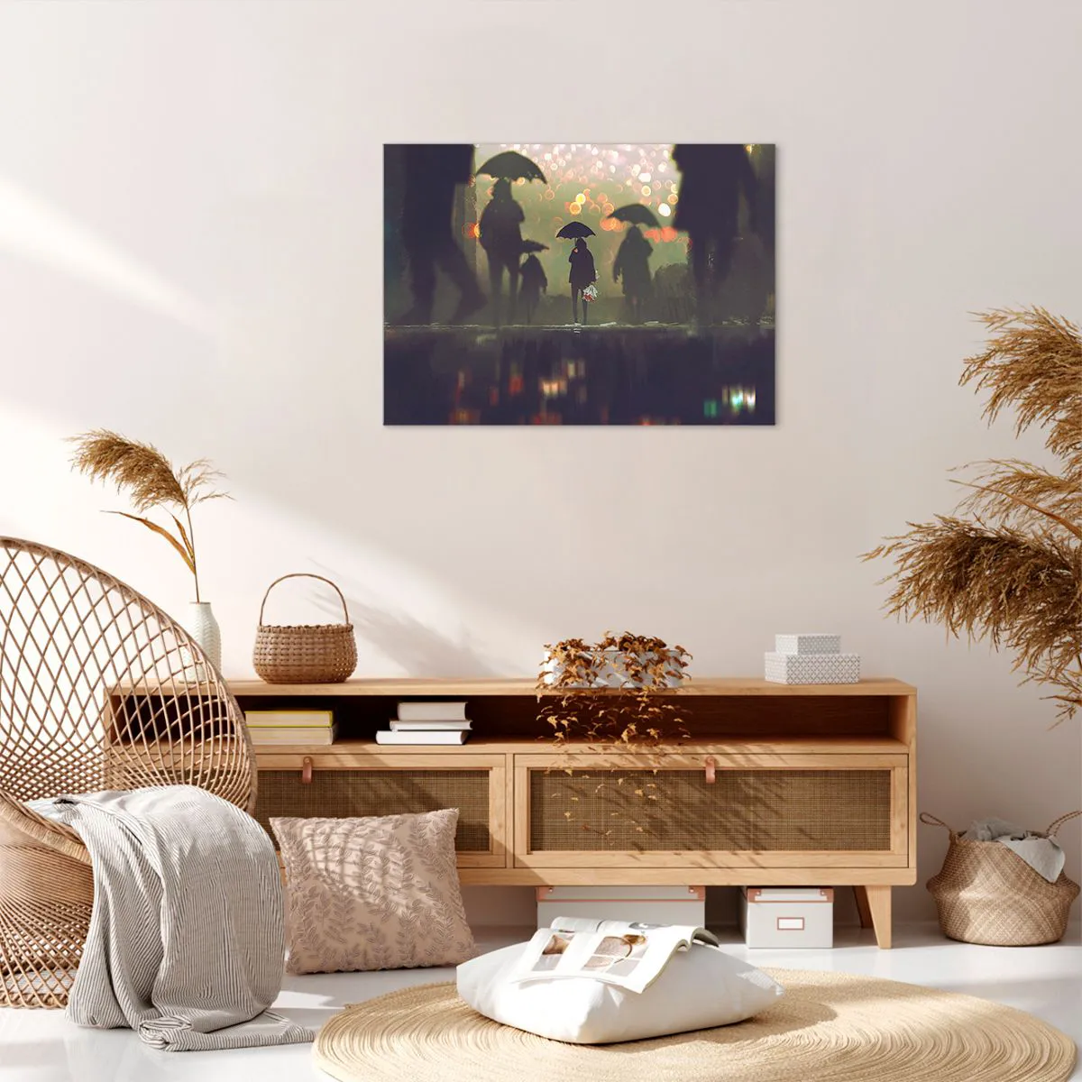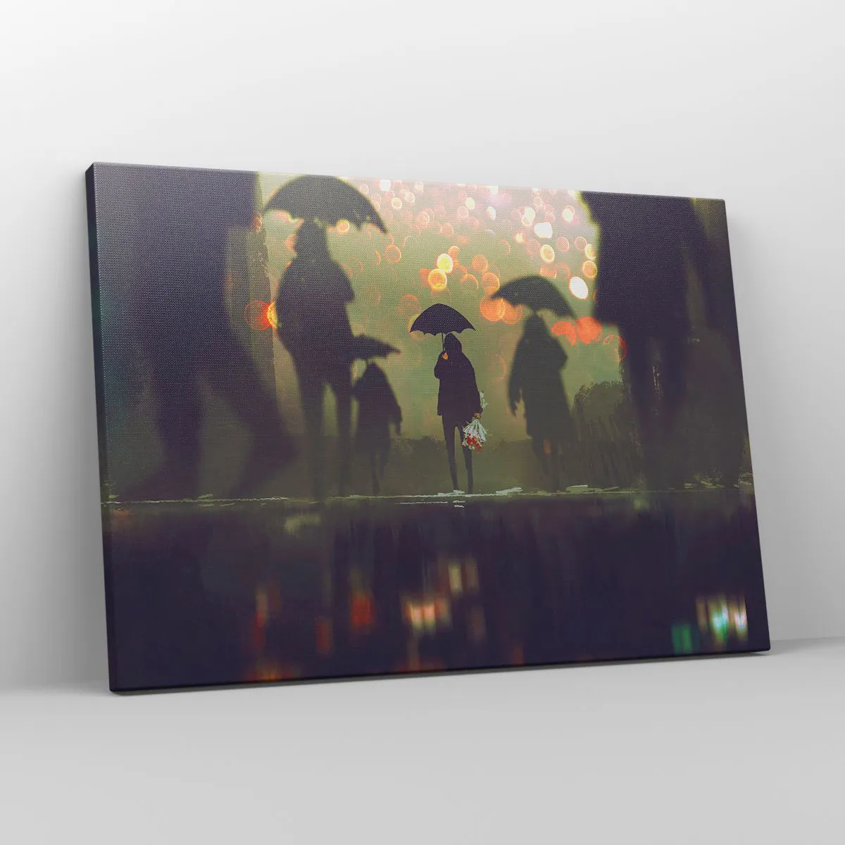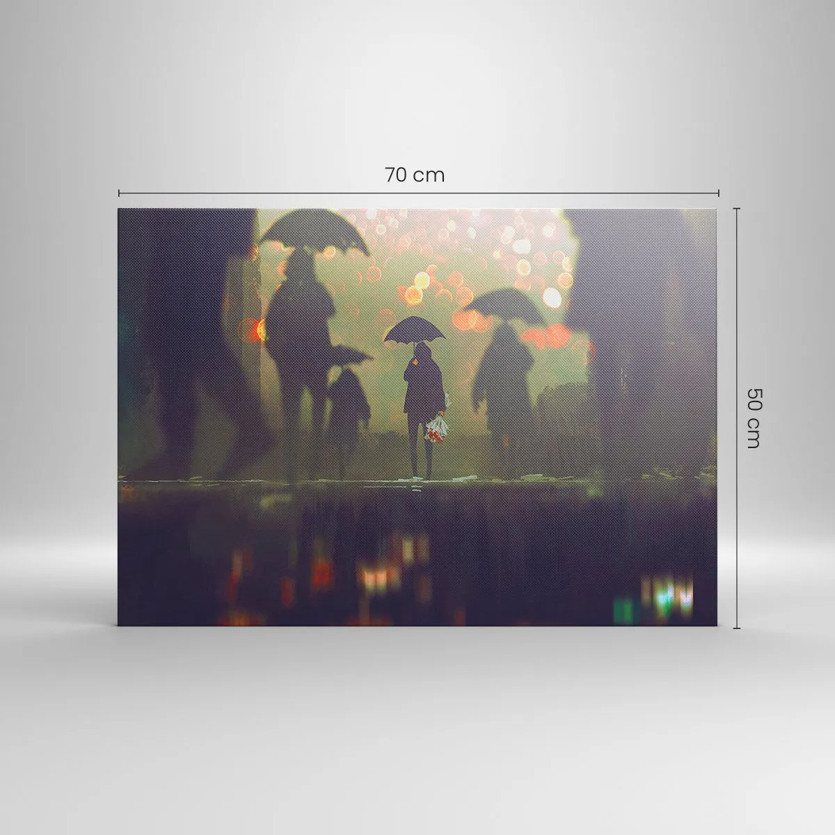 Grâce à son impression sur toile professionnelle, le tableau impressionne par ses couleurs intenses et ses détails précis. « Figure avec un parapluie un soir de pluie » est un excellent choix pour ceux qui apprécient les éléments de décoration intérieure atmosphériques.