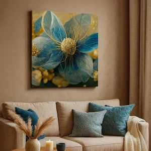 Impression sur toile - Image sur toile - Fleurs élégantes dans des tons de bleu et d'or - 100x70cm - Fleurir avec de l'or - Décoration murale moderne pour le salon et la chambre ARTTOR