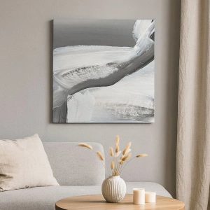 Impression sur toile - Image sur toile - Abstraction grise et blanche avec des lignes dynamiques - 70x50cm - Un geste décisif - Décoration murale moderne pour le salon et la chambre ARTTOR