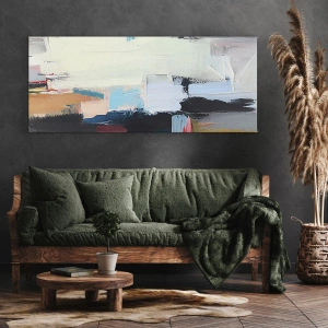 Impression sur toile - Image sur toile - Abstraction colorée avec des coups de pinceau dynamiques - 120x50cm - Y a-t-il une méthode ? - Décoration murale moderne pour le salon et la chambre ARTTOR