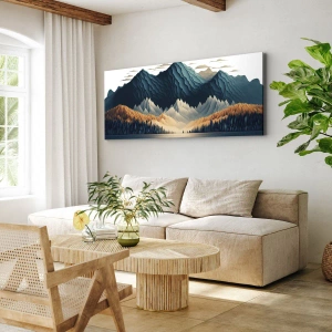 La peinture sur toile « Paysage de montagne parfait » est une composition pittoresque représentant des montagnes entourées d'un lac aux couleurs chaudes du coucher du soleil. Ses détails subtils et ses couleurs harmonieuses confèrent aux intérieurs une beauté et une tranquillité uniques.