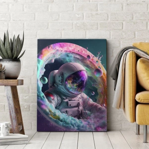 Impression sur toile - Image sur toile - Astronaute dans une aura cosmique colorée - 50x70cm - porte des étoiles - Décoration murale moderne pour le salon et la chambre ARTTOR