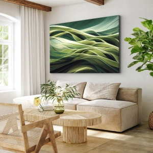 Impression sur toile - Image sur toile - Lignes dynamiques dans des tons de vert - 50x70cm - Jeu de vert abstrait - Décoration murale moderne pour le salon et la chambre ARTTOR