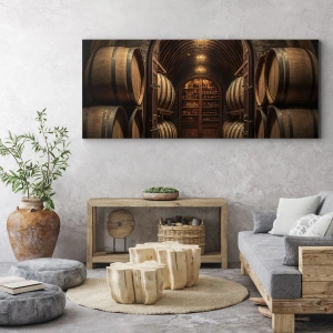 Impression sur toile - Image sur toile - Cave à vin avec tonneaux en bois et étagères à vin - 140x50cm - Cave climatisée - Décoration murale moderne pour le salon et la chambre ARTTOR