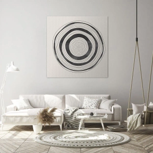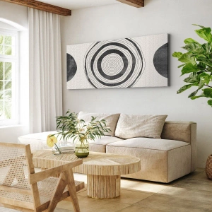 Impression sur toile - Image sur toile - Cercles minimalistes noirs et blancs sur fond clair - 80x120cm - Ce qui est important c'est ce qu'il y a entre les deux - Décoration murale moderne pour le salon et la chambre ARTTOR