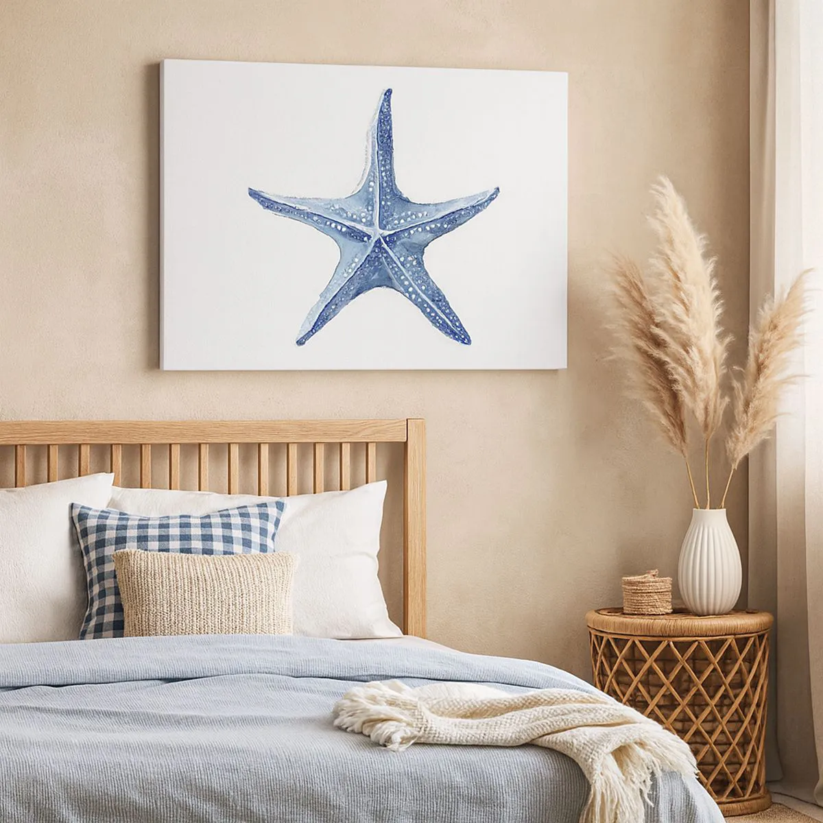 Impression sur toile - Image sur toile - Étoile de mer bleue sur fond blanc dans un style minimaliste - 120x80cm - Étoile de mer - Décoration murale moderne pour le salon et la chambre ARTTOR