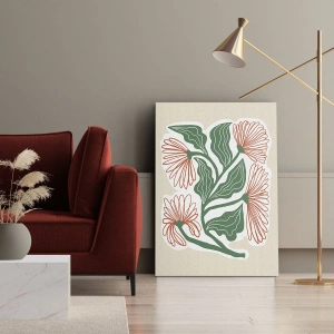 Impression sur toile - Image sur toile - Un dessin de fleurs dans un style minimaliste avec des feuilles vertes - 120x80cm - Folk et moderne - Décoration murale moderne pour le salon et la chambre ARTTOR