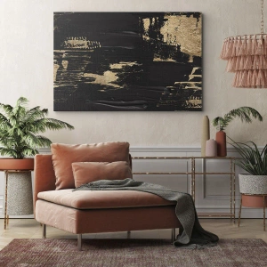 Impression sur toile - Image sur toile - Composition abstraite dans les tons de noir et d'or - 100x70cm - Empreinte du toucher - Décoration murale moderne pour le salon et la chambre ARTTOR