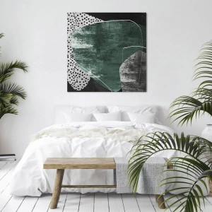 - Cette toile imprimée de 70 x 50 cm présente une composition abstraite aux formes vertes et aux motifs de pois. Parfaite pour les intérieurs modernes et minimalistes.