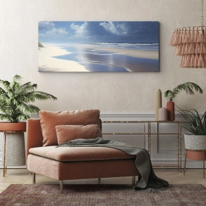 Impression sur toile - Image sur toile - Une plage de sable avec des vagues sous un ciel bleu - 160x50cm - Des vacances paradisiaques - Décoration murale moderne pour le salon et la chambre ARTTOR