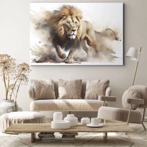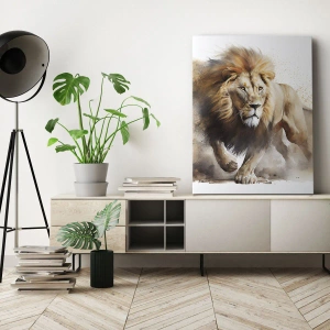 Impression sur toile - Image sur toile - Un portrait dynamique d'un lion aux couleurs naturelles. - 50x70cm - Le roi bougea - Décoration murale moderne pour le salon et la chambre ARTTOR
