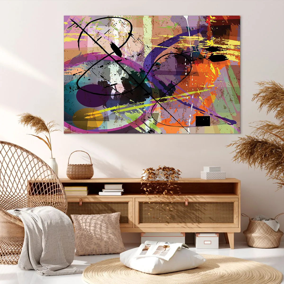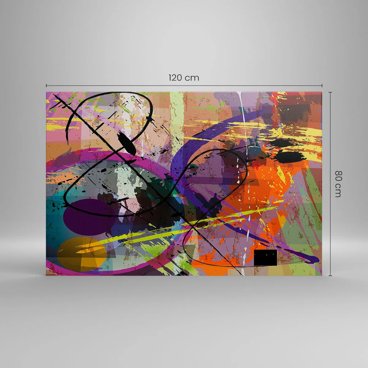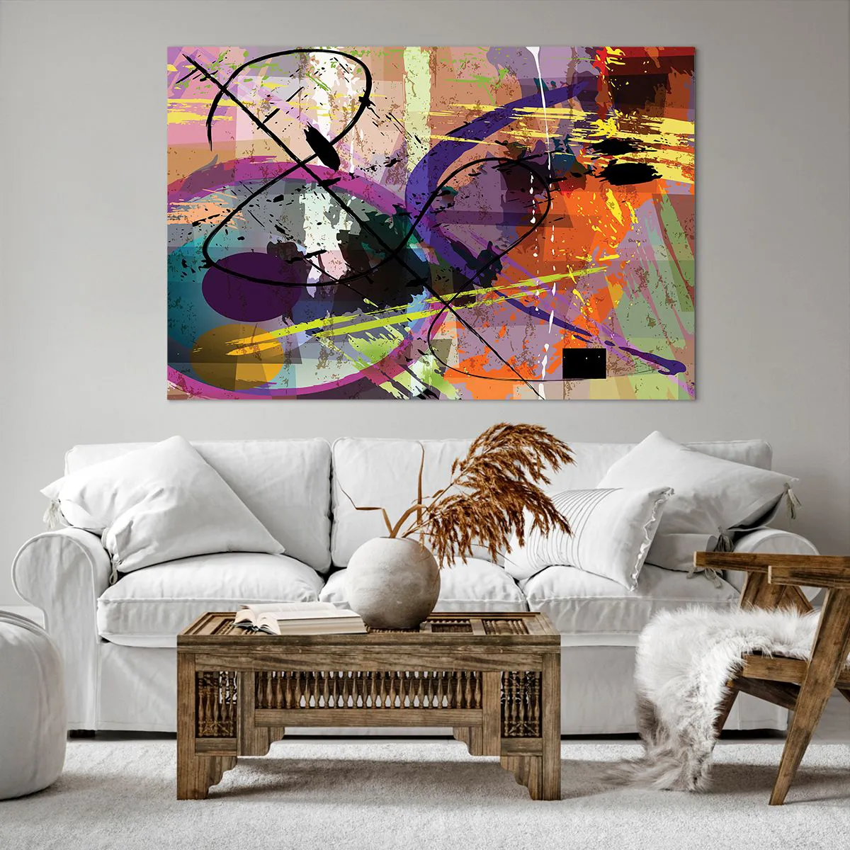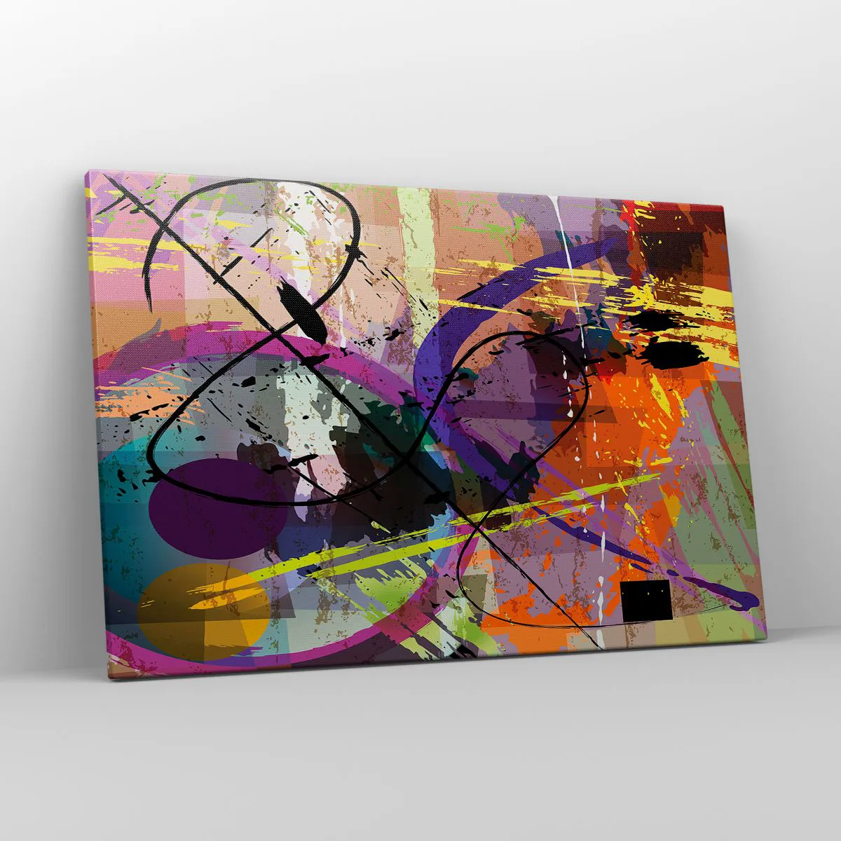 Impression sur toile - Image sur toile - Un motif abstrait coloré avec des lignes et des formes dynamiques. - 120x80cm - Vous pouvez aller tout droit ou autour - Décoration murale moderne pour le salon et la chambre ARTTOR