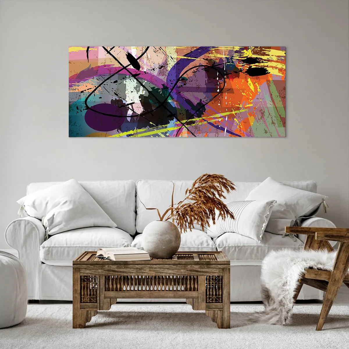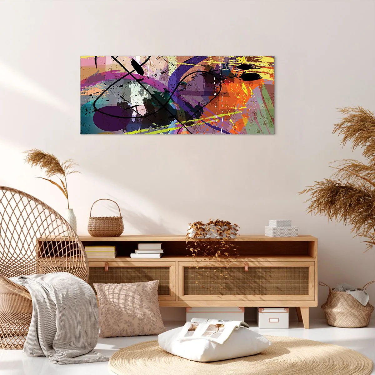 Impression sur toile - Image sur toile - Un motif abstrait coloré avec des lignes et des formes dynamiques. - 120x50cm - Vous pouvez aller tout droit ou autour - Décoration murale moderne pour le salon et la chambre ARTTOR