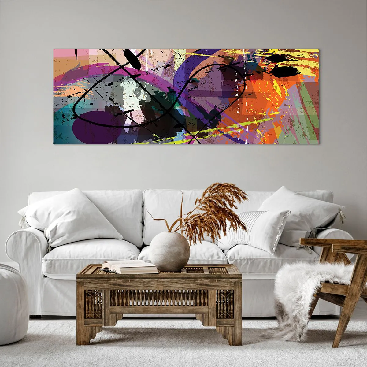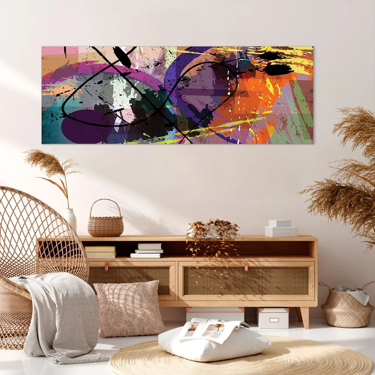 Impression sur toile - Image sur toile - Un motif abstrait coloré avec des lignes et des formes dynamiques. - 140x50cm - Vous pouvez aller tout droit ou autour - Décoration murale moderne pour le salon et la chambre ARTTOR