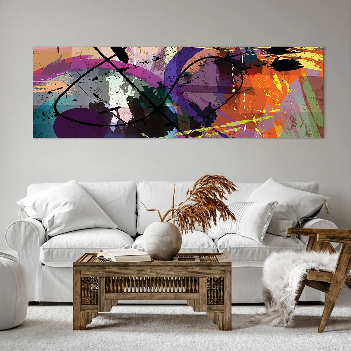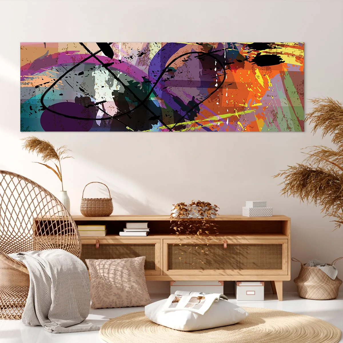 Impression sur toile - Image sur toile - Un motif abstrait coloré avec des lignes et des formes dynamiques. - 160x50cm - Vous pouvez aller tout droit ou autour - Décoration murale moderne pour le salon et la chambre ARTTOR