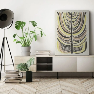 Impression sur toile - Image sur toile - Motif de feuille abstrait dans des tons terreux - 100x70cm - Abstraction pleine de vie - Décoration murale moderne pour le salon et la chambre ARTTOR