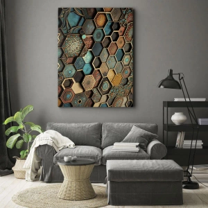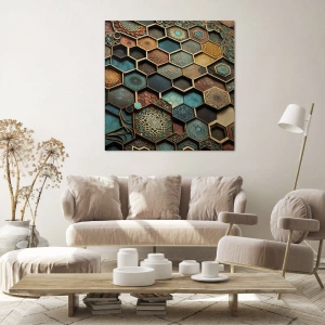 Impression sur toile - Image sur toile - Ornements colorés aux motifs hexagonaux - 70x100cm - Ornements arabes – variation - Décoration murale moderne pour le salon et la chambre ARTTOR
