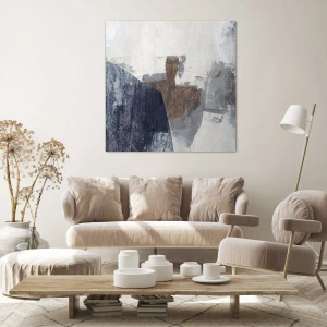 Impression sur toile - Image sur toile - Formes abstraites dans des tons de bleu et de marron - 80x120cm - Formes bleues et brunes - Décoration murale moderne pour le salon et la chambre ARTTOR